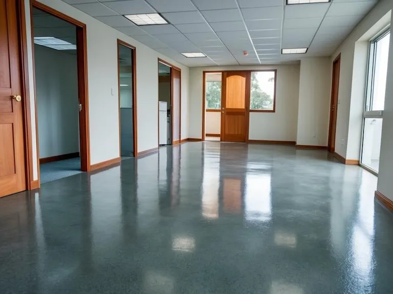 A polished concrete floor offers a sleek, glossy finish that enhances the natural beauty of concrete. It's durable, low-maintenance, and ideal for both residential and commercial spaces, providing a modern, reflective surface that resists wear and stains.